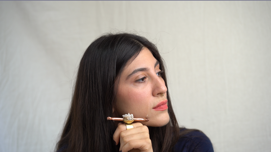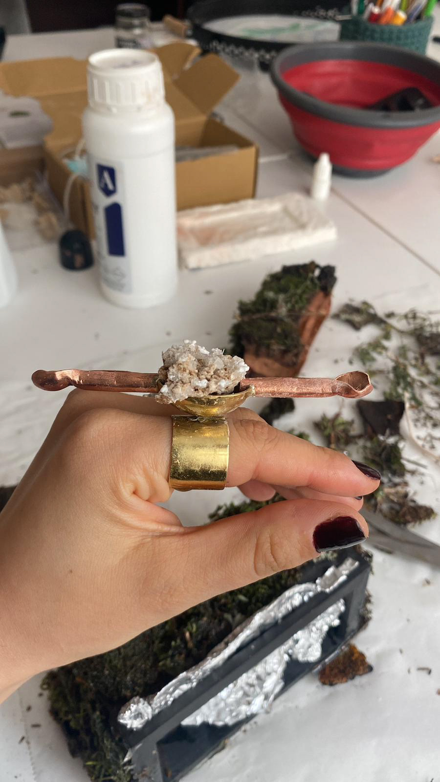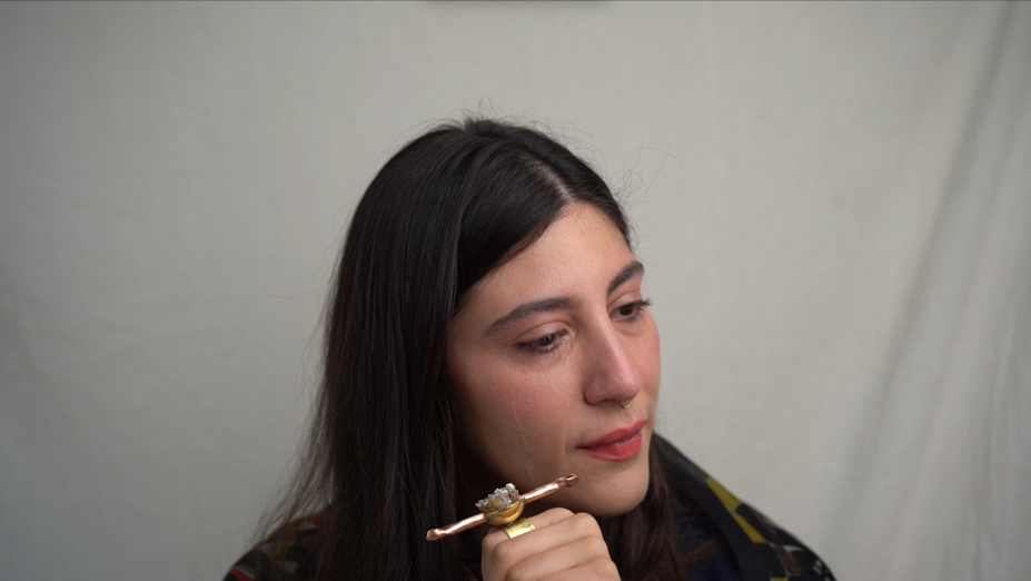 Untill I do is an engaement ring that replaces the social contract with a biological one. The title subverts the traditional wedding vow. The piece begins with a potassium alum growed sea sponge, set in the band with a tiny vessel to collect the chemistry of the nervous system. The vessel and the tubes feeds the sponge with tears (saline, cortisol, prolcatin, enkephalin, ACTH), mirroring the internal release of supressed grief. In medicine, potassium alum stops the flow of blood, in Until I do, it represents emotional clotting. What was crystalized, brakes down, what was hardened softens.