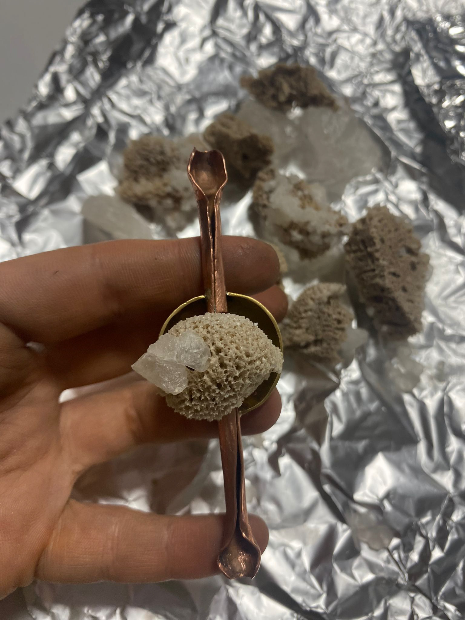 By the time the crystal is gone and only the sponge remains, the wearer is left with a physcial manifestation of their own resilience. The more you grieve into it, the sponge empties and so do you.